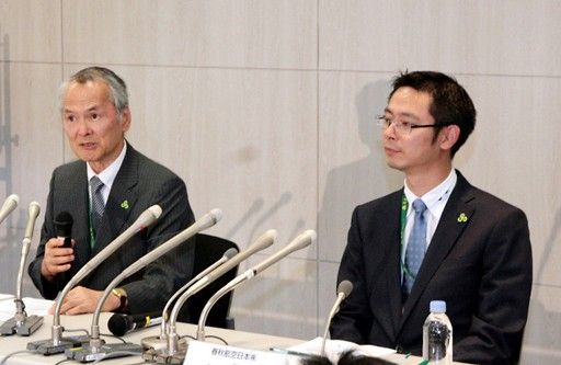 春秋航空日本分公司總經理鵜飼博(左)5日在東京出席記者會
