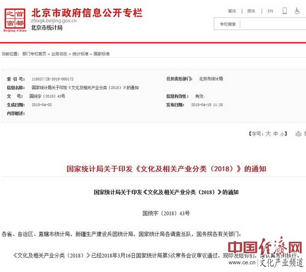 國(guó)家統(tǒng)計(jì)局關(guān)于印發(fā)《文化及相關(guān)產(chǎn)業(yè)分類(2018)》的通知