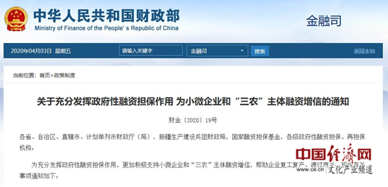 為充分發(fā)揮政府性融資擔保作用,更加積極支持小微企業(yè)和“三農(nóng)”主體融資增信,幫助企業(yè)復工復產(chǎn)、渡過難關,現(xiàn)將有關事項通知如下: