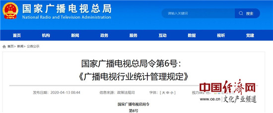 《廣播電視行業(yè)統(tǒng)計管理規(guī)定》已經2020年3月20日國家廣播電視總局局務會議審議通過,現予公布,自2020年5月5日起施行。