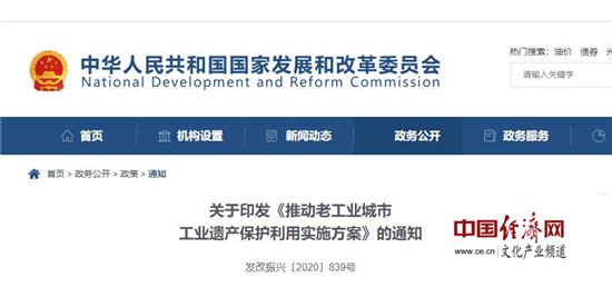 經(jīng)濟(jì)日?qǐng)?bào)-中國經(jīng)濟(jì)網(wǎng)北京6月10日訊 近日,國家發(fā)展改革委會(huì)同工業(yè)和信息化部、國務(wù)院國資委、國家文物局、國家開發(fā)銀行聯(lián)合印發(fā)了《推動(dòng)老工業(yè)城市工業(yè)遺產(chǎn)保護(hù)利用實(shí)施方案》(以下簡稱《實(shí)施方案》)?!秾?shí)施方案》提出,堅(jiān)持把工業(yè)遺產(chǎn)保護(hù)利用作為推動(dòng)老工業(yè)城市高質(zhì)量發(fā)展的重要內(nèi)容,加快發(fā)展新時(shí)代中國特色工業(yè)文化,推動(dòng)工業(yè)遺產(chǎn)保護(hù)利用與文化保護(hù)傳承、產(chǎn)業(yè)創(chuàng)新發(fā)展、城市功能提升協(xié)同互進(jìn),打造一批集城市記憶、知識(shí)傳播、創(chuàng)意文化、休閑體驗(yàn)于一體的“生活秀帶”。