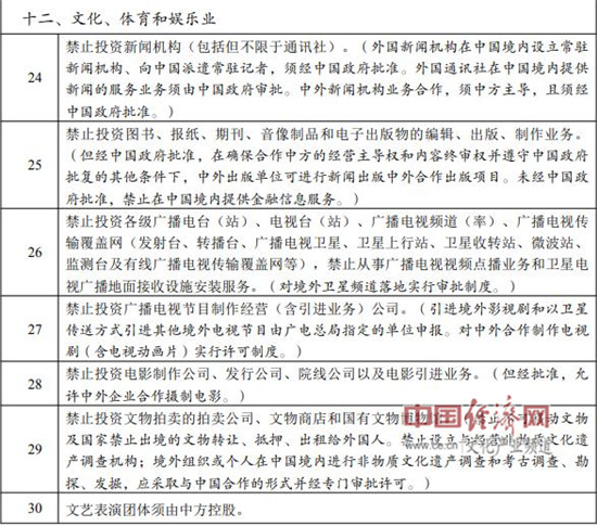 2020年版外商投資準(zhǔn)入負(fù)面清單文體娛相關(guān)內(nèi)容