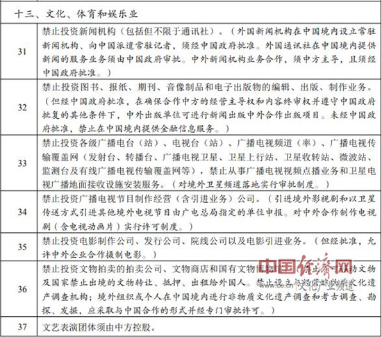 2019年版外商投資準(zhǔn)入負(fù)面清單文體娛相關(guān)內(nèi)容