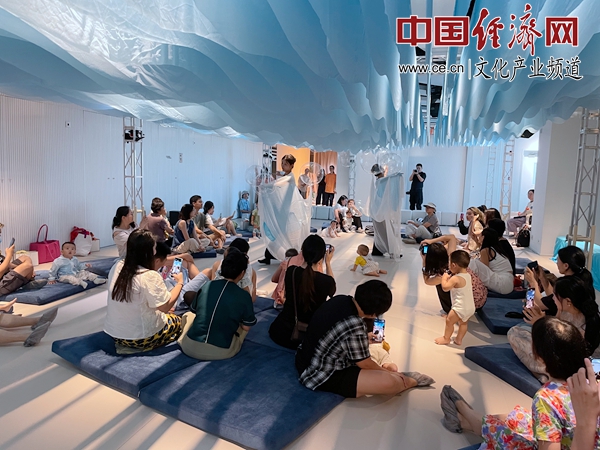 8月22日下午,在天橋藝術(shù)中心第五空間,一場沉浸式互動嬰幼兒戲劇《Ohh…Ocean!》正在上演,與其他戲劇不一樣的是,這些觀眾都是半歲至1歲的小寶寶。小寶寶們與家長一起,席地而坐,在音樂中與演員們一起感受海洋空間。天橋藝術(shù)中心第五空間運營負(fù)責(zé)人陳莉告訴記者:“內(nèi)容和空間是雙向奔赴的。我們開始做這些空間的時候,不知道未來會有什么樣的內(nèi)容使用這些空間。直到引進這個劇目,使空間與內(nèi)容非常好地結(jié)合了起來。”