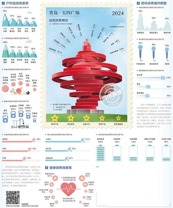 近年來,青島打造了多個旅游IP,每到節(jié)假日,棧橋、太平角、八大關、五四廣場等景點,都會人頭攢動。影音娛樂、攝影攝像類產品的增長,顯現(xiàn)出青島著名旅游城市的底色。人氣足,消費旺,文旅深度融合進一步激發(fā)了消費活力。