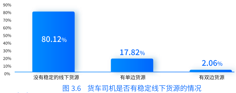 報告中提到,約80.12%的司機(jī)沒有穩(wěn)定的線下貨源供應(yīng),貨車司機(jī)很少能夠掌握穩(wěn)定線下貨源。大部分司機(jī)面臨貨運工作的不穩(wěn)定性,需要花費大量時間和精力去尋找和獲取貨源,這不僅降低了他們的運輸效率,也增加了運營成本。