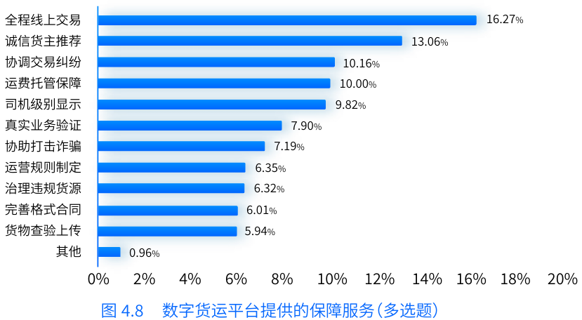 報告指出,通過貨車司機(jī)在線上獲取貨源的比例來衡量他們客觀上對平臺的使用情況,發(fā)現(xiàn)貨車司機(jī)使用數(shù)字貨運平臺的程度較高。