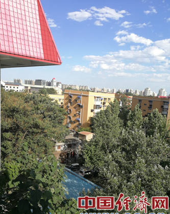 圖為藍(lán)條白云下的北京市西城區(qū)白紙坊東街2號。