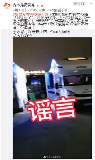 據(jù)吉林省吉林市龍?zhí)秴^(qū)信息與網(wǎng)絡(luò)服務(wù)中心官方微博5月10日消息,網(wǎng)上有視頻謠傳“舒蘭疫情已到鐵東”。經(jīng)核實(shí),此視頻場景為《平原上的摩西》攝制組的拍攝基地,請大家不要相信拍攝者旁白謠傳。