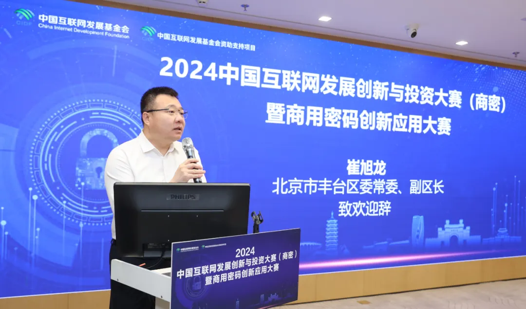 北京市豐臺區(qū)常委、副區(qū)長崔旭龍致辭,中國互聯(lián)網(wǎng)發(fā)展基金會、中國互聯(lián)網(wǎng)投資基金、工信部網(wǎng)安中心領導出席觀賽。