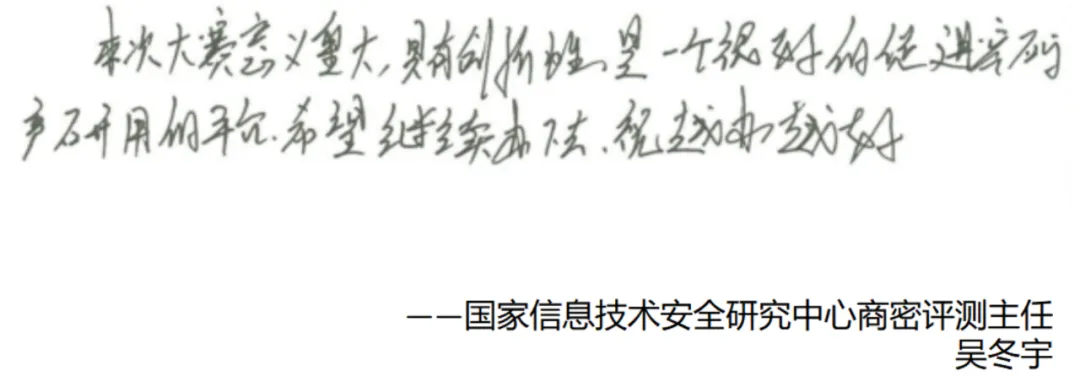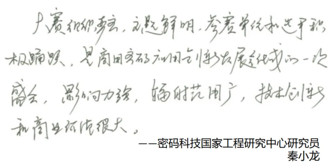 賽后,密碼科技國家工程研究中心研究員秦小龍、中國電力科學研究院高級工程師李智虎、中國科學院大學網(wǎng)絡空間安全學院教授/博導王躍武、國家信息技術安全研究中心商密評測主任吳冬宇等多位專家評委給大賽提出了寶貴的建議和意見。