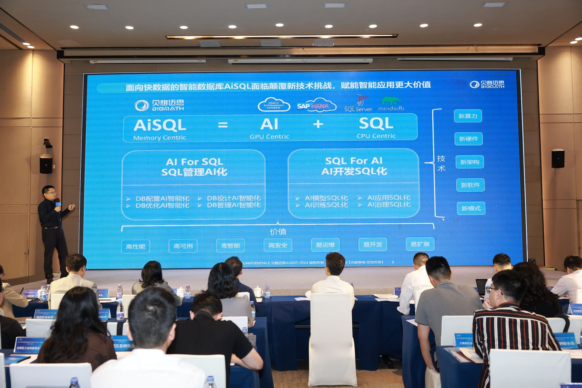 “項(xiàng)目最核心的技術(shù)就是人工智能”“大模型在其中扮演著重要角色,解決了應(yīng)用痛點(diǎn)問題”“AI與數(shù)據(jù)庫有效結(jié)合,軟硬一體,使數(shù)據(jù)庫管理和應(yīng)用更具智能化、易用性”……不管是在大賽21場路演中,還是在總決賽上,AI、大模型等被頻繁提及。