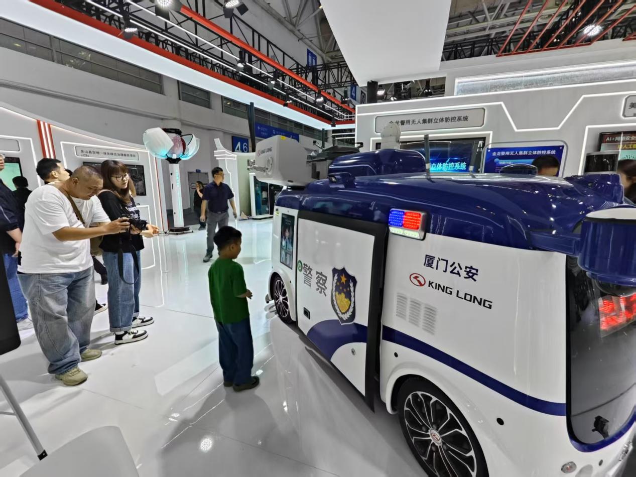 頭頂無人機(jī)、肚藏機(jī)器狗……集多種科技于一身的無人安防警車吸引了小朋友的目光。 中國經(jīng)濟(jì)網(wǎng)記者梁木攝