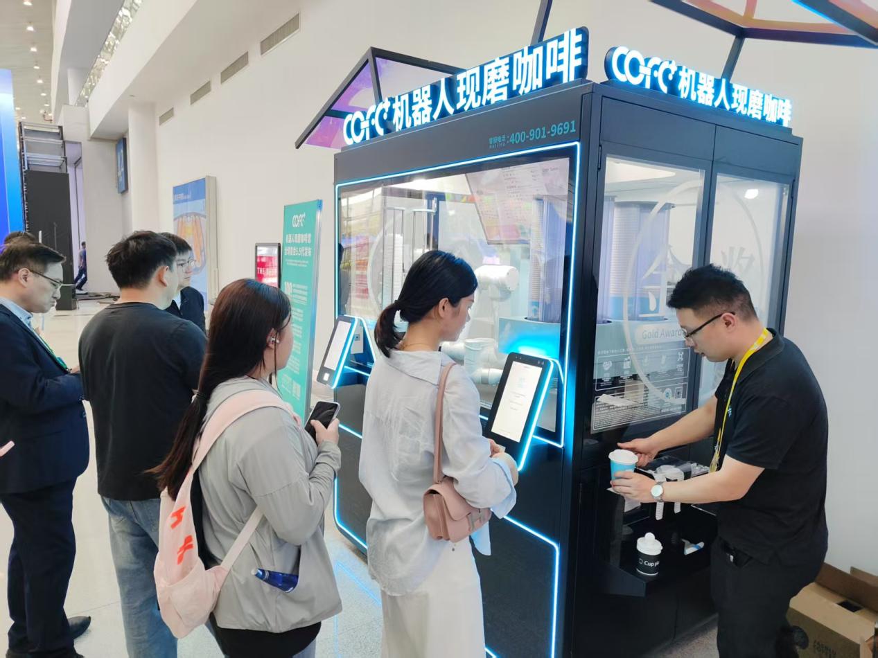 機(jī)器人現(xiàn)磨咖啡約50秒即可制作完成,成為現(xiàn)場的餐飲“打卡點(diǎn)”。 中國經(jīng)濟(jì)網(wǎng)記者梁木攝