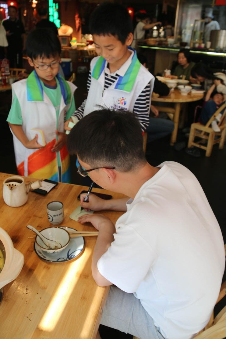 在實(shí)踐環(huán)節(jié),志愿者們學(xué)以致用,化身“制止餐飲浪費(fèi)”宣傳員,向餐廳中的食客宣傳節(jié)糧反浪費(fèi)知識(shí),發(fā)放節(jié)糧知識(shí)宣傳單,邀請食客寫下節(jié)約糧食和避免浪費(fèi)的心得,將“一起來光盤”的節(jié)約理念傳遞給餐廳的消費(fèi)者。