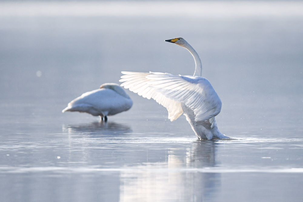 這是在青海省海東市化隆回族自治縣境內(nèi)的黃河邊拍攝的天鵝。新華社記者齊芷玥攝