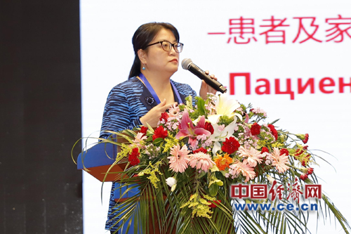 北京中醫(yī)藥大學(xué)東直門醫(yī)院血液腫瘤科主任醫(yī)師、國(guó)家中醫(yī)藥管理局中醫(yī)血液病學(xué)科帶頭人李冬云演講。李濤/攝
