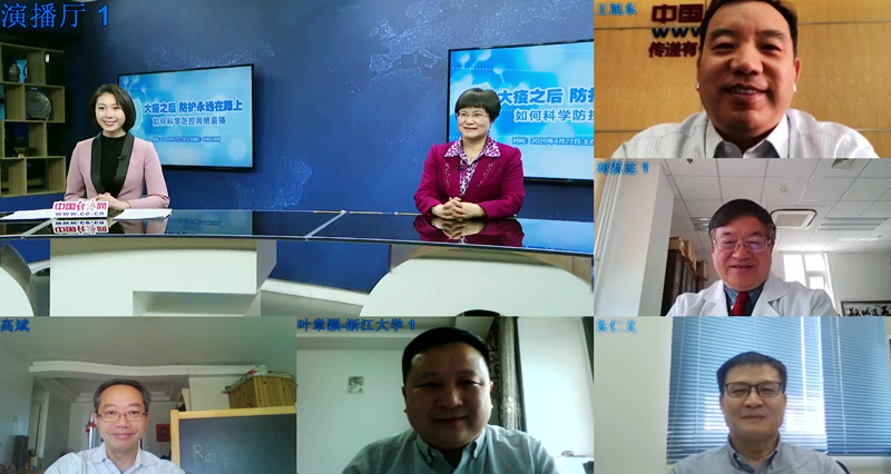 4月27日,“大疫之后 防護(hù)永遠(yuǎn)在路上”如何科學(xué)防控網(wǎng)絡(luò)直播通過中經(jīng)云端舉辦。圖為直播現(xiàn)場。