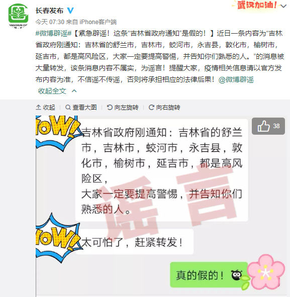 謠言粉碎機(jī)三:“吉林省政府通知”:吉林多市屬高風(fēng)險(xiǎn)區(qū)?假的!