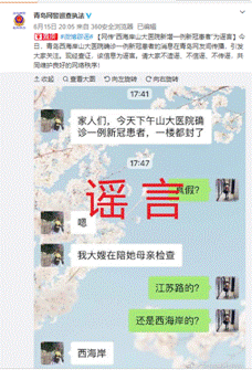 此外,記者從 @青島網(wǎng)警巡查執(zhí)法 獲悉,網(wǎng)傳“西海岸山大醫(yī)院新增一例新冠患者”也系謠言。
