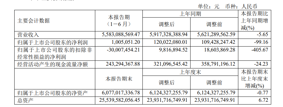 8月25日,華北制藥披露《2021年半年報》,公司營收凈利雙雙下降。其中,實(shí)現(xiàn)營收558308.86萬元,同比降低5.65%;歸屬于上市公司股東的凈利潤為100.51萬元,同比降低99.16%;歸屬于上市公司股東的扣除非經(jīng)常性損益的凈利潤為-3000.75萬元,虧損同比擴(kuò)大405.67%;經(jīng)營活動產(chǎn)生的現(xiàn)金流量凈額為24329.44萬元,同比下降24.23%。