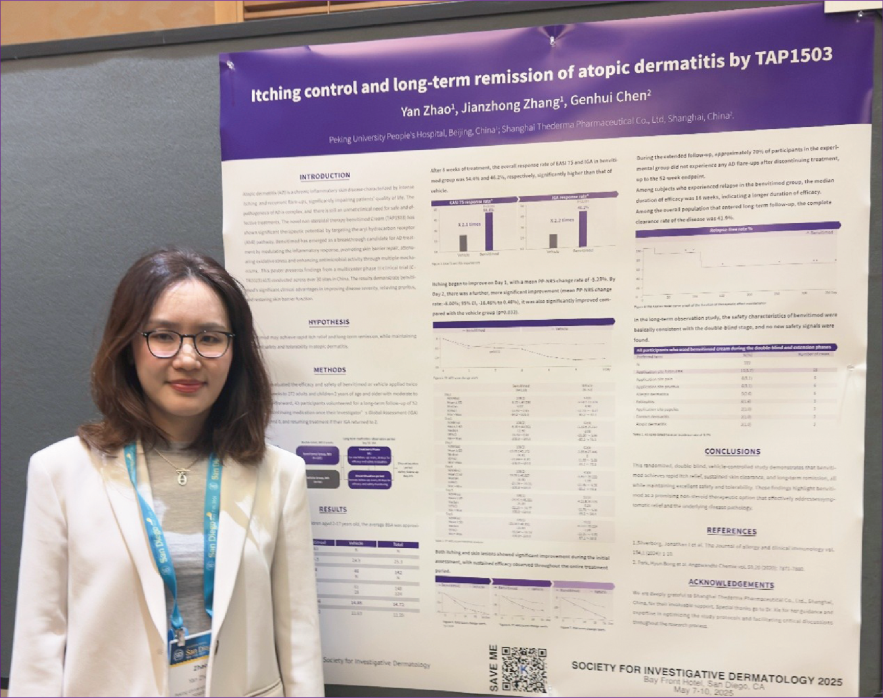 2025年第82屆美國皮膚病研究學會年會(SID)于5月7日至10日在美國圣地亞哥舉行,來自北京大學人民醫(yī)院趙琰教授關于澤立美本維莫德乳膏治療特應性皮炎的確證性臨床研究數據重磅亮相本次年會。這是首個且唯一針對中國人群的研究,展示了澤立美本維莫德乳膏在速效止癢、療效持久及安全性方面的顯著優(yōu)勢。
