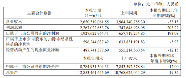 中國經(jīng)濟網(wǎng)北京8月20日訊(記者 郭文培)日前,達(dá)仁堂披露2025年半年度報告。報告期內(nèi),公司實現(xiàn)營業(yè)收入26.51億元,同比下降33.15%;歸屬于上市公司股東的凈利潤為19.28億元,同比增長193.08%。