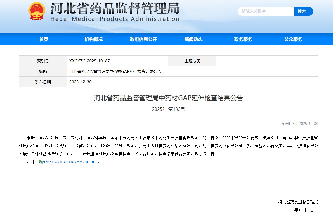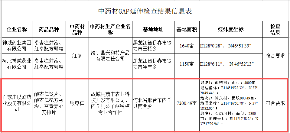河北省藥品監(jiān)督管理局日前發(fā)布《河北省藥品監(jiān)督管理局中藥材GAP延伸檢查結(jié)果公告》,以嶺藥業(yè)酸棗仁種植基地通過(guò)河北省藥監(jiān)局組織的GAP延伸檢查,綜合評(píng)定符合要求。這是全國(guó)第一個(gè)通過(guò)GAP延伸檢查的酸棗仁基地。