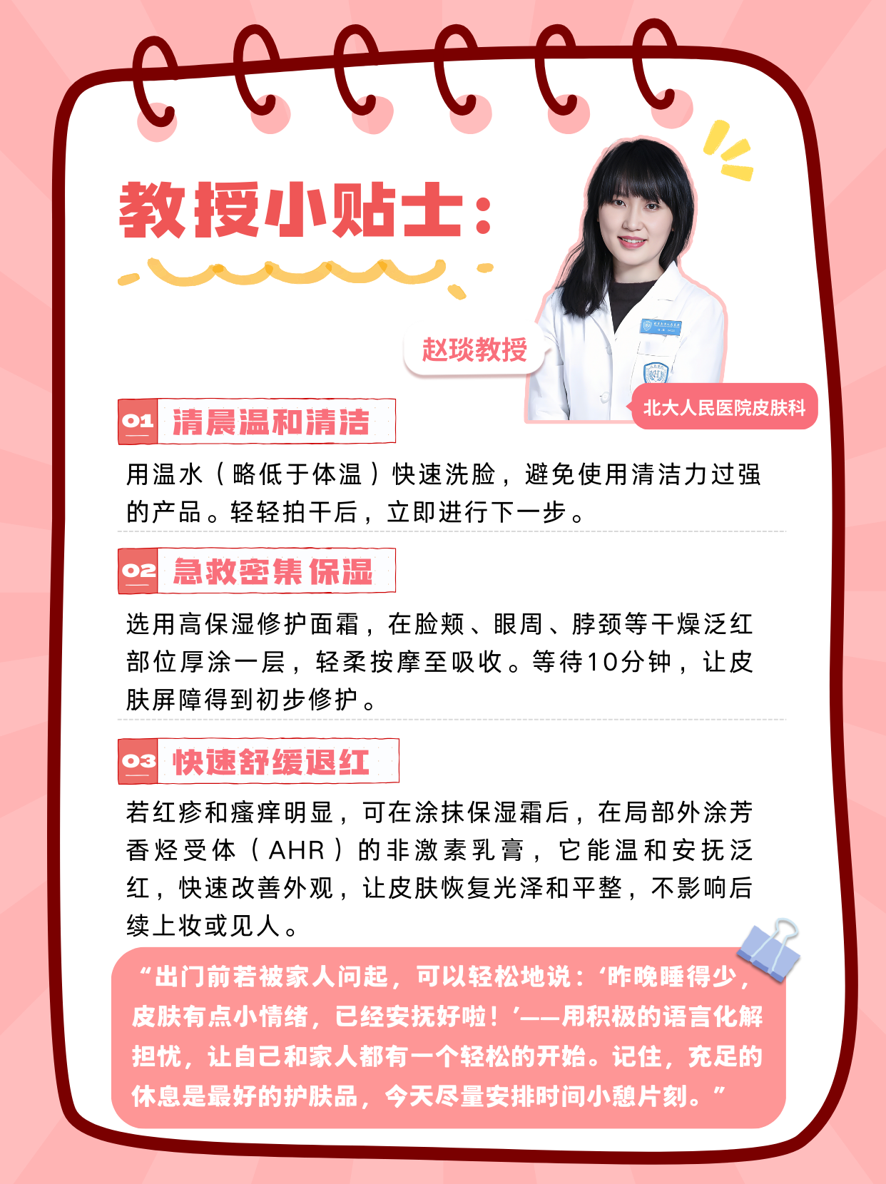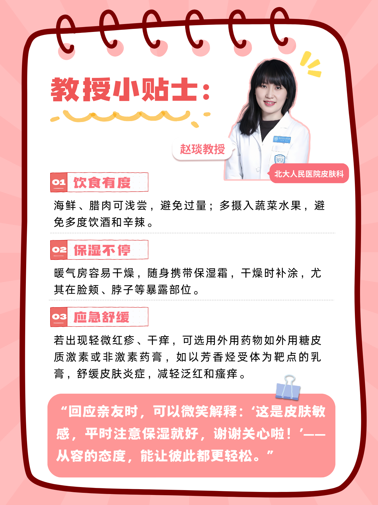 “回應(yīng)親友時(shí),可以微笑解釋:‘這是皮膚敏感,平時(shí)注意保濕就好,謝謝關(guān)心啦!’——從容的態(tài)度,能讓彼此都更輕松?!?/p>