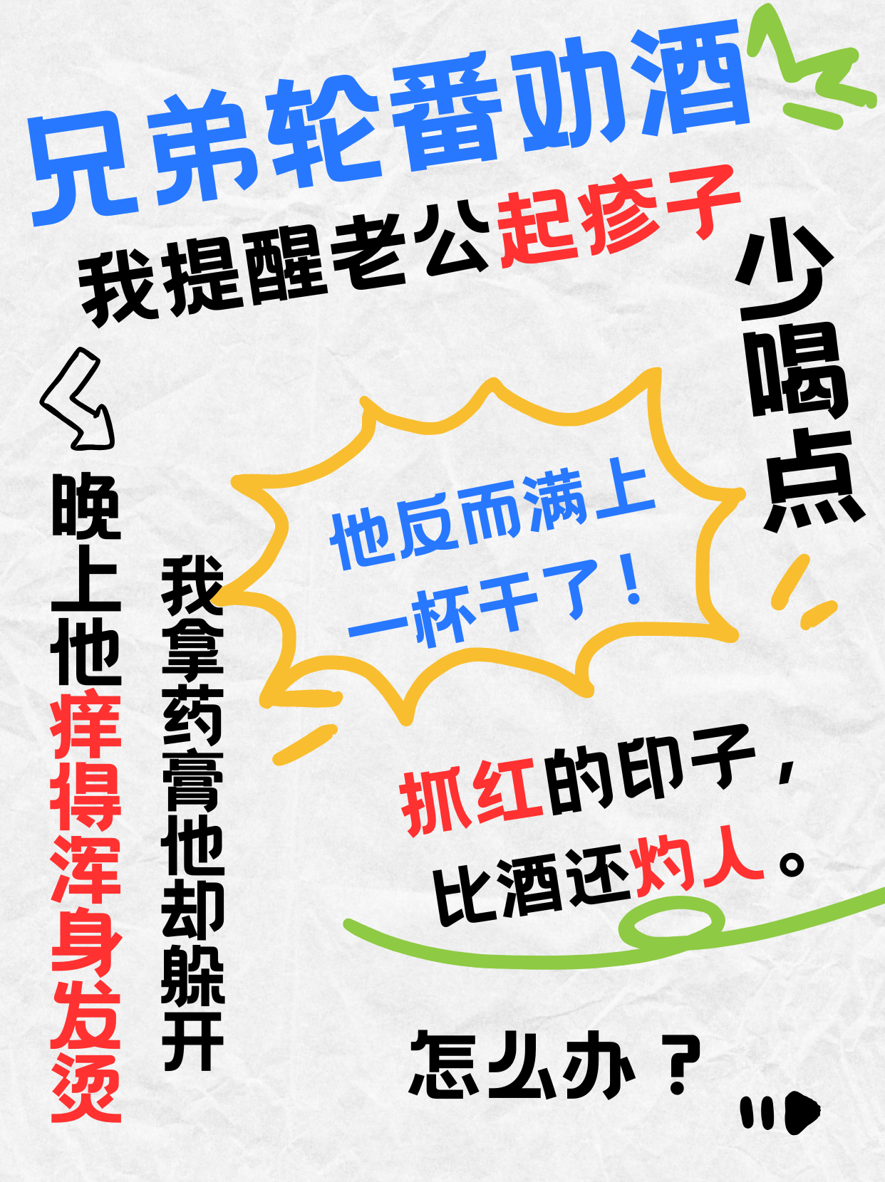 兄弟輪番勸酒,我提醒老公起疹子少喝點(diǎn)。