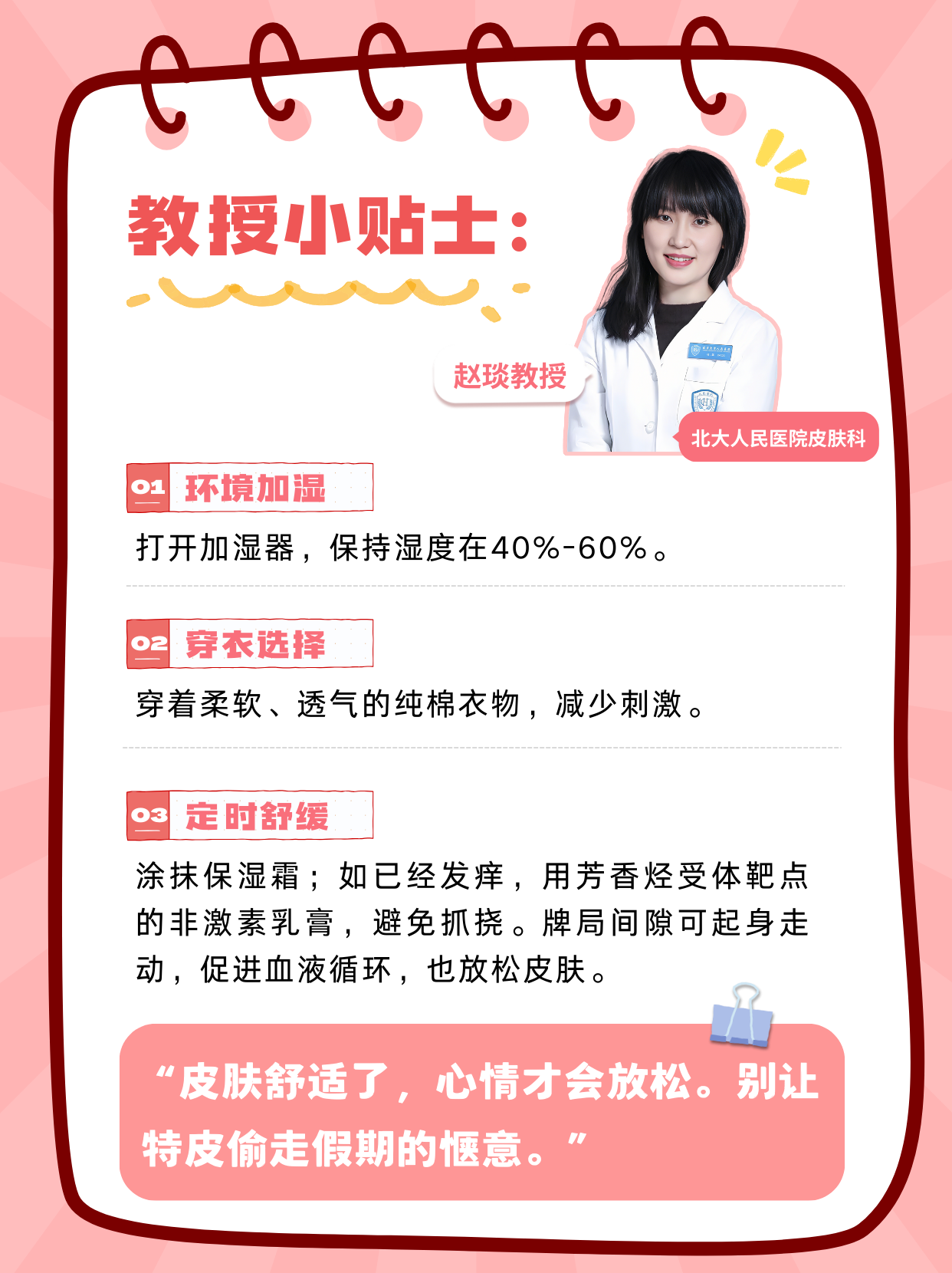 “皮膚舒適了,心情才會(huì)放松。別讓特皮偷走假期的愜意?!?/p>