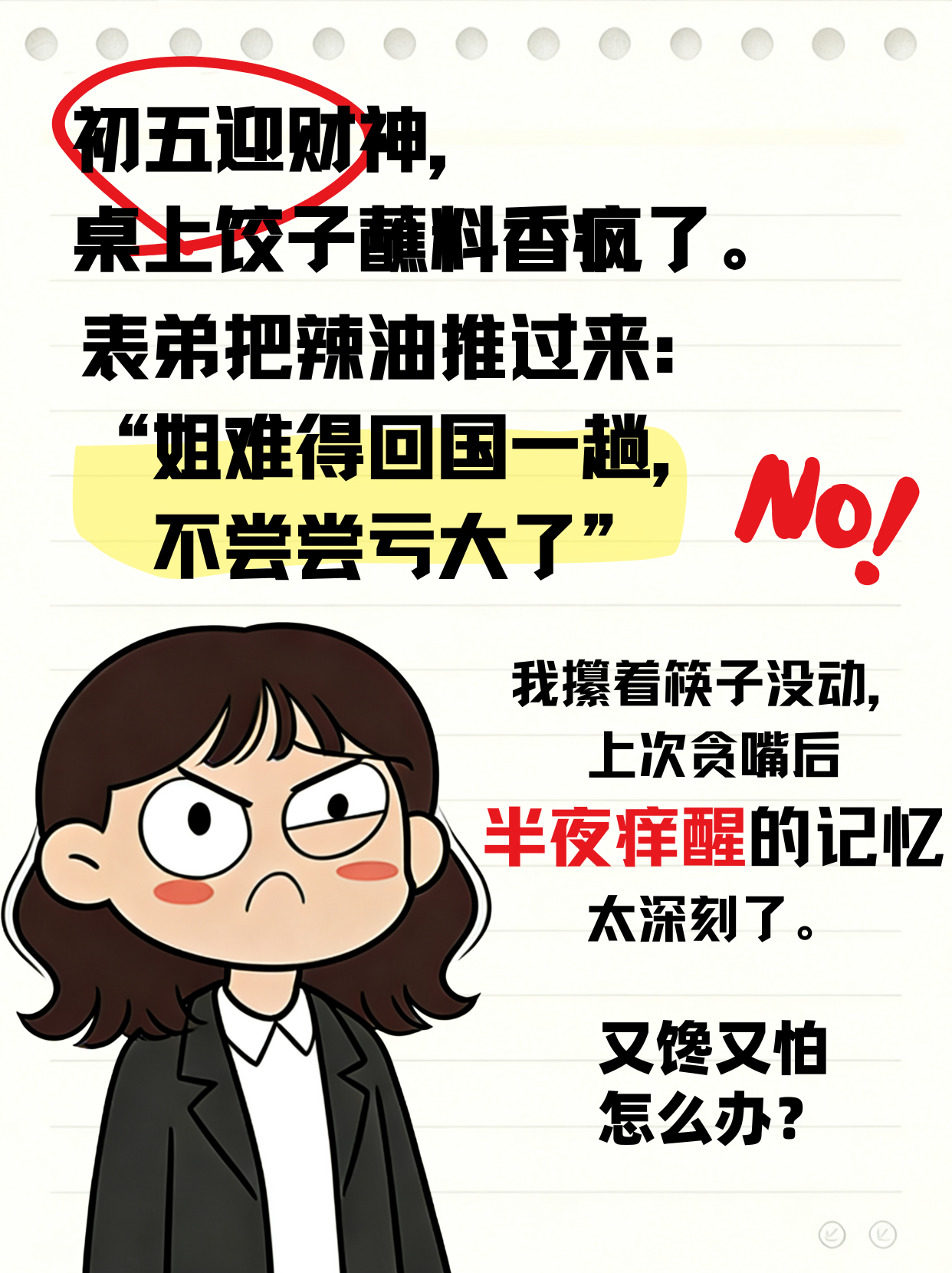 我攥著筷子沒動(dòng),上次貪嘴后半夜癢醒的記憶太深刻了。