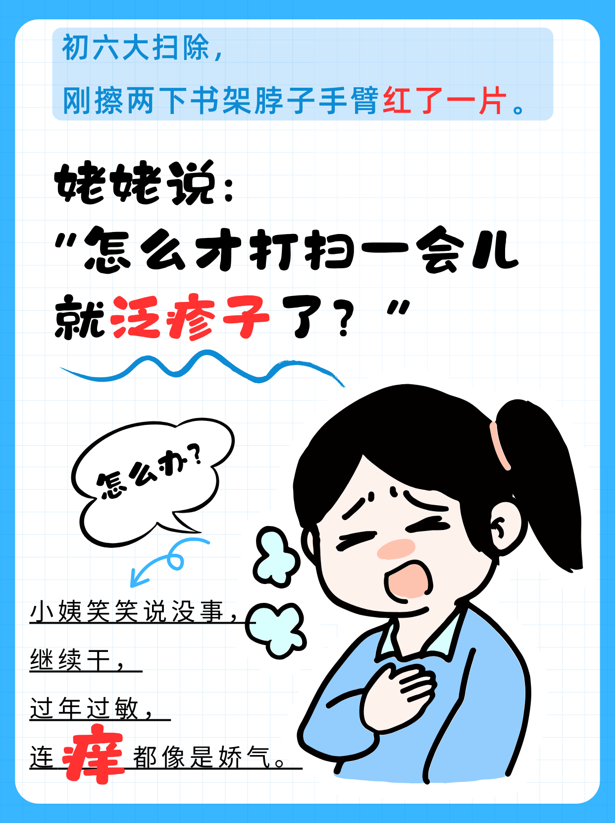 姥姥說:“怎么才打掃一會(huì)兒就泛疹子了?”
