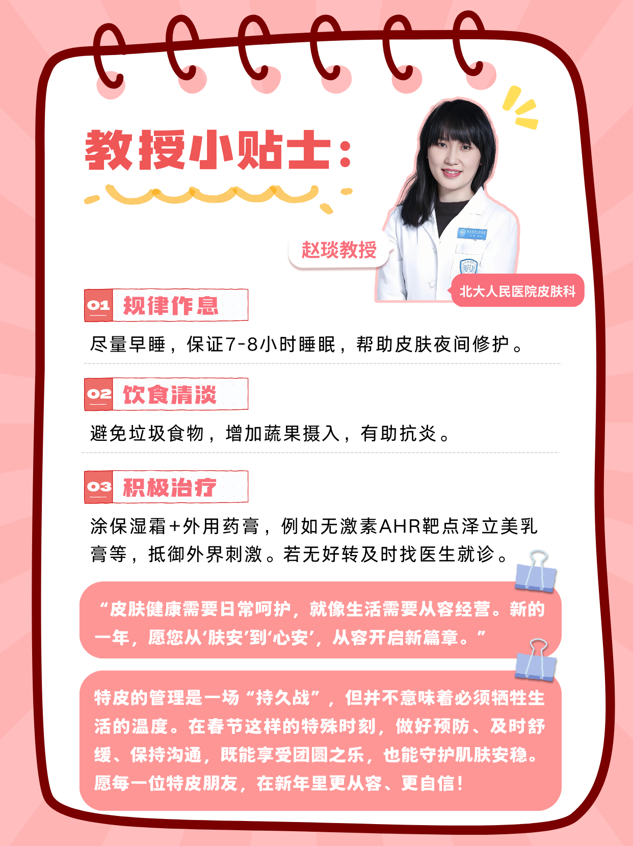 特皮的管理是一場(chǎng)“持久戰(zhàn)”,但并不意味著必須犧牲生活的溫度。在春節(jié)這樣的特殊時(shí)刻,做好預(yù)防、及時(shí)舒緩、保持溝通,既能享受團(tuán)圓之樂,也能守護(hù)肌膚安穩(wěn)。愿每一位特皮朋友,在新年里更從容、更自信!