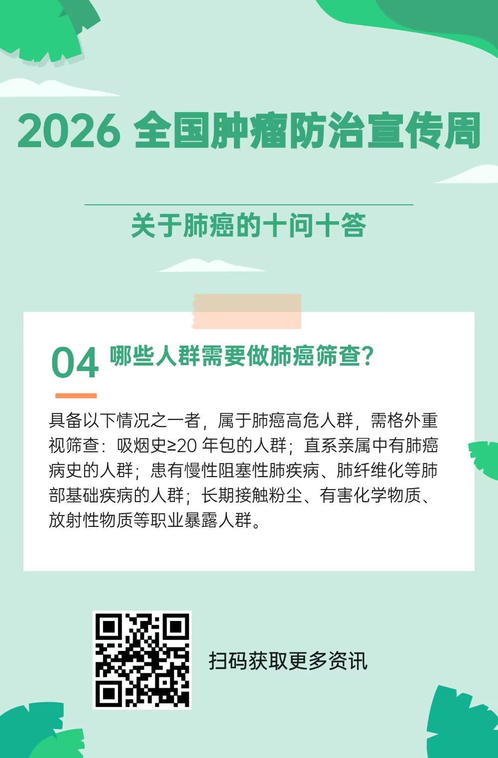 2026全國腫瘤防治宣傳周|不吸煙也會(huì)得肺癌?關(guān)于肺癌的十問十答
