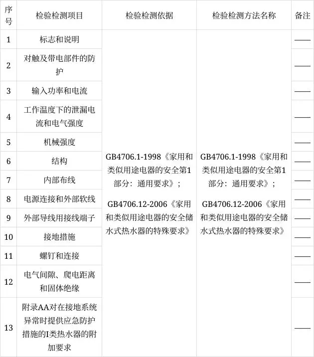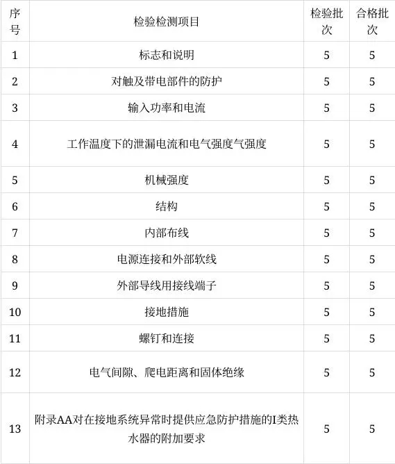 表2 儲(chǔ)水式電熱水器產(chǎn)品檢驗(yàn)檢測項(xiàng)目及依據(jù)