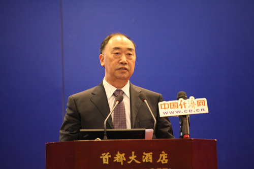 由中國(guó)道路交通安全協(xié)會(huì)、中國(guó)汽車技術(shù)研究中心和中國(guó)經(jīng)濟(jì)網(wǎng)共同主辦的“2013中國(guó)道路交通安全論壇”于8月29日在北京首都大酒店舉行。圖為經(jīng)濟(jì)日?qǐng)?bào)社社長(zhǎng)徐如俊致辭。中國(guó)經(jīng)濟(jì)網(wǎng) 裴小閣 攝影