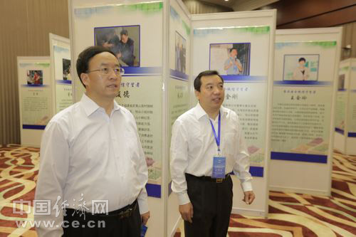 2013年全國食品安全宣傳周啟動儀式暨第五屆中國食品安全論壇6月17日在北京舉辦,今年主題為“社會共治 同心攜手維護(hù)食品安全”。圖為蘭州市市長袁占亭參觀食品安全“誠信守望者”展覽。中國經(jīng)濟(jì)網(wǎng) 王耀峰/攝