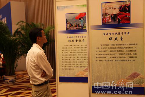 2013年全國(guó)食品安全宣傳周啟動(dòng)儀式暨第五屆中國(guó)食品安全論壇6月17日在北京舉辦,今年主題為“社會(huì)共治 同心攜手維護(hù)食品安全”。圖為大自然保護(hù)協(xié)會(huì)中國(guó)主席馬云參觀食品安全“誠(chéng)信守望者”展覽。中國(guó)經(jīng)濟(jì)網(wǎng) 王耀峰/攝