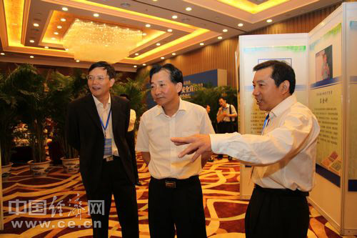 2013年全國食品安全宣傳周啟動儀式暨第五屆中國食品安全論壇6月17日在北京舉辦,今年主題為“社會共治 同心攜手維護食品安全”。圖為農(nóng)業(yè)部副部長陳曉華參觀食品安全“誠信守望者”展覽。中國經(jīng)濟網(wǎng) 王耀峰/攝