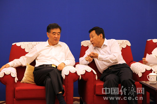 6月17日,以“社會共治、同心攜手維護(hù)食品安全”為主題的2013年全國食品安全宣傳周主場活動在北京舉行。國務(wù)院副總理汪洋出席活動并講話。圖為國務(wù)院副總理汪洋與國家食品藥品監(jiān)督管理總局局長張勇交流。 中國經(jīng)濟(jì)網(wǎng) 王耀峰/攝